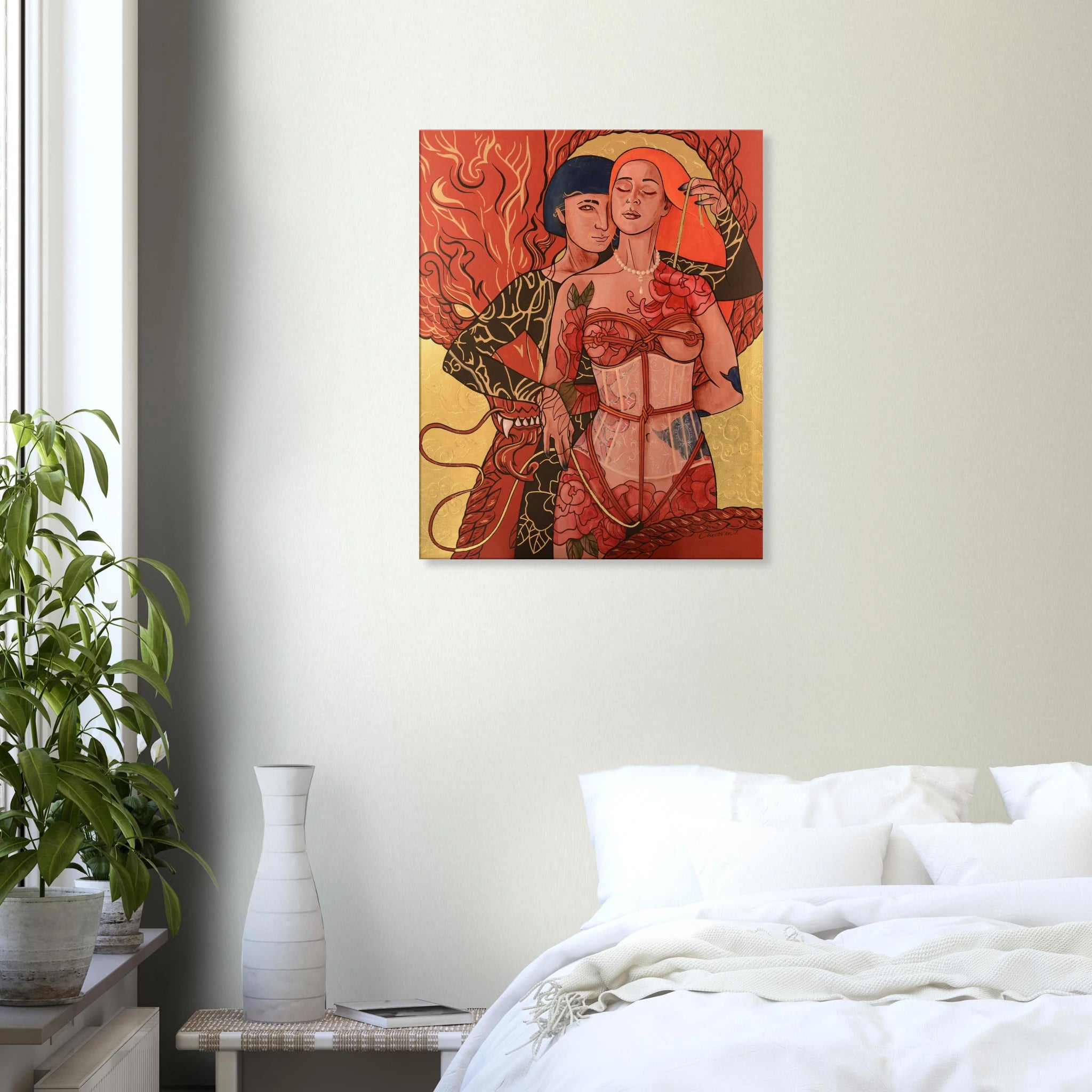 Canvases are usually displayed without an outer frame—the edges are painted as a continuation of the image for a clean, contemporary look.
