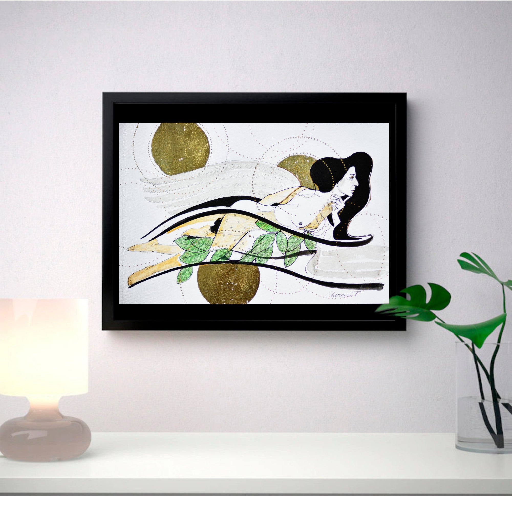 I ship works on paper unframed. Ready-made frames are easy to find (e.g., IKEA’s classic RIBBA). Most include a white mat (mount) that lets the artwork “breathe.”