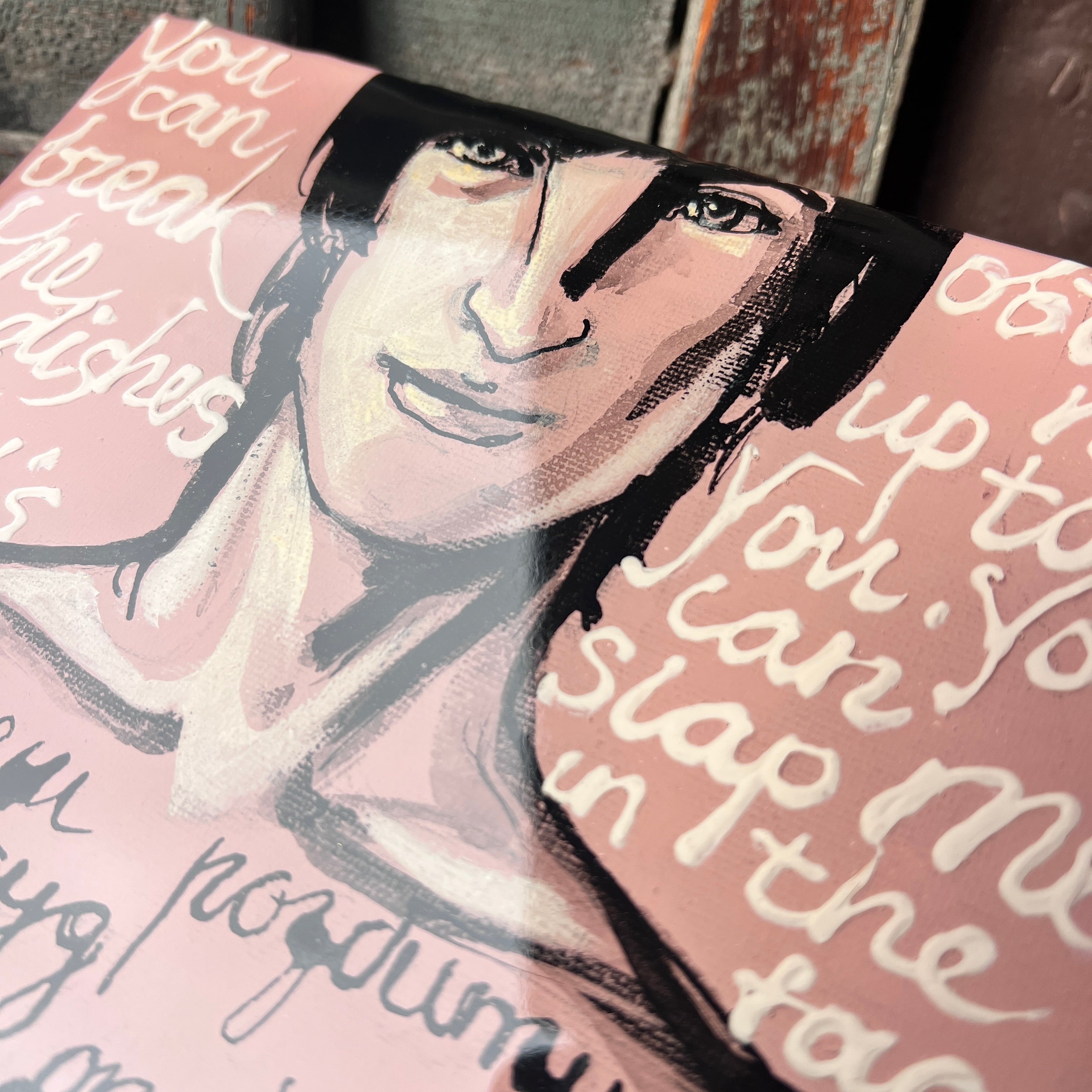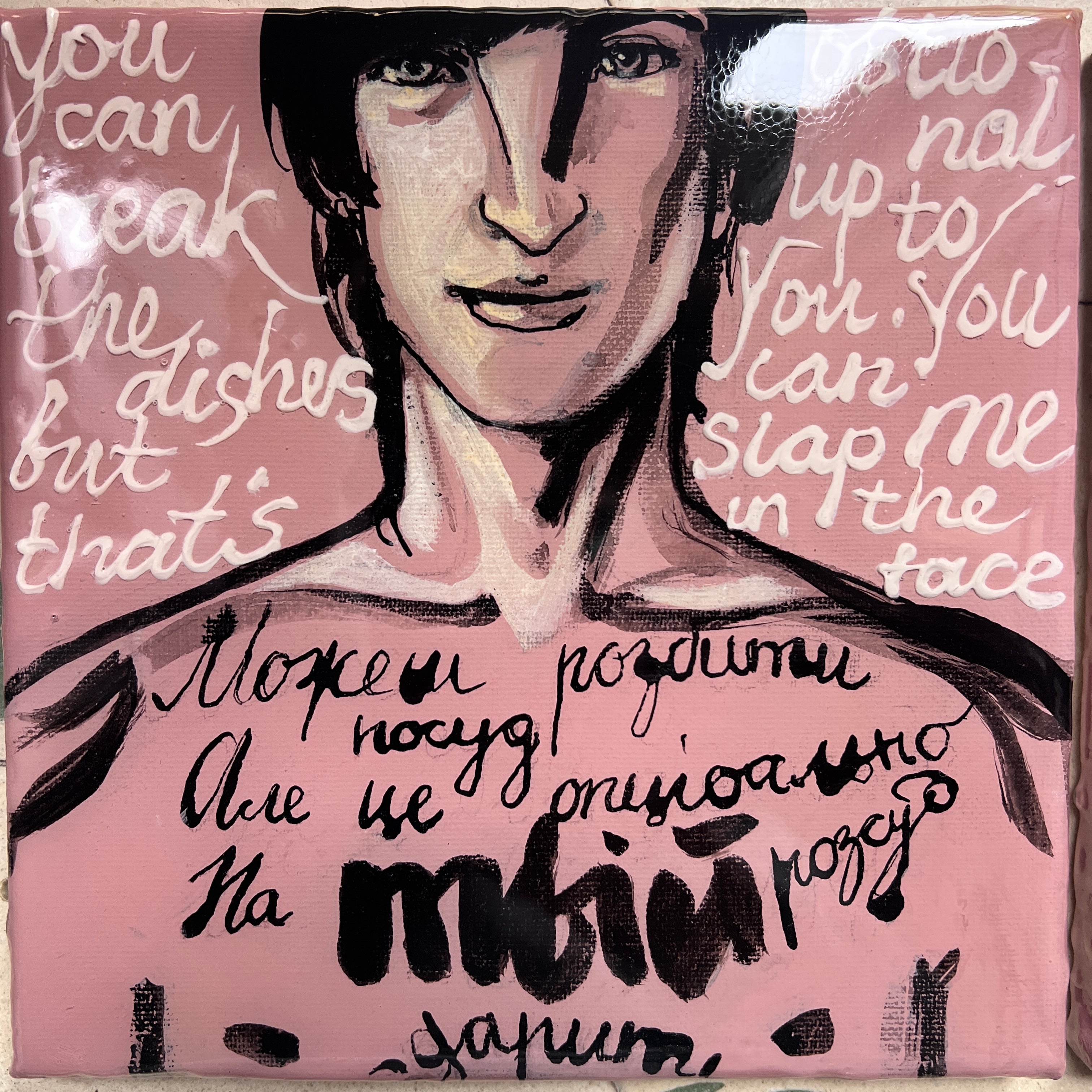 The painting depicts a man whose body carries a poem by the Ukrainian poet Zlata Zhuravlova.