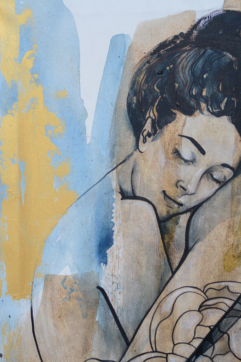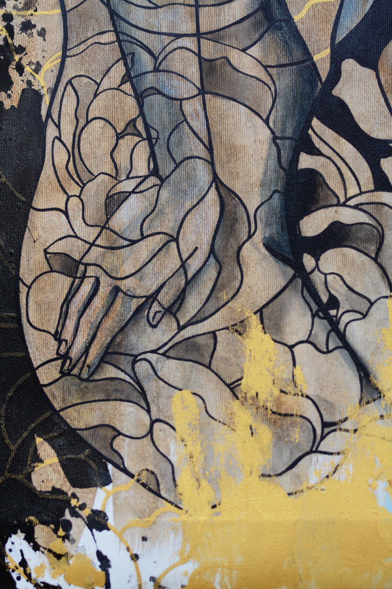 The artwork was created during a stay in Thailand. Acrylic paints and Chinese ink were used.