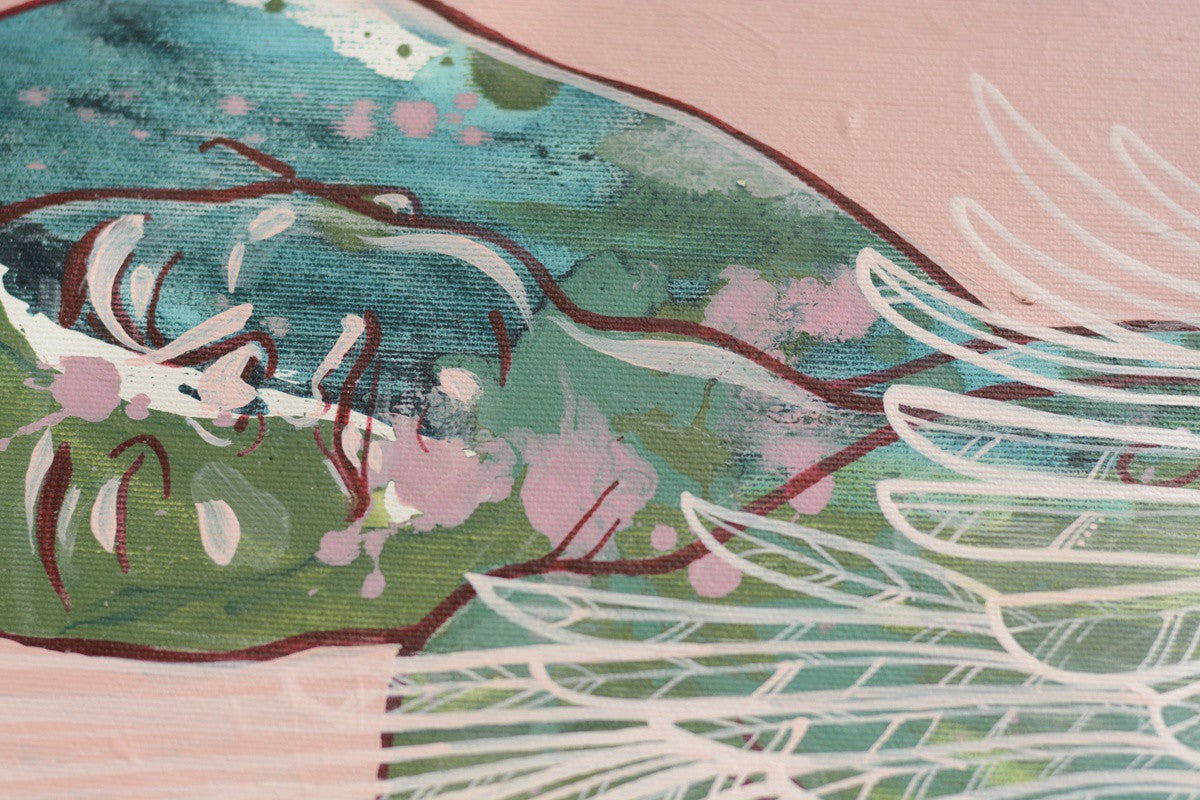 If you prefer a frame, choose an open (floater) frame: it mounts from behind and leaves a slim gap around the canvas, adding visual “air” without covering the composition.