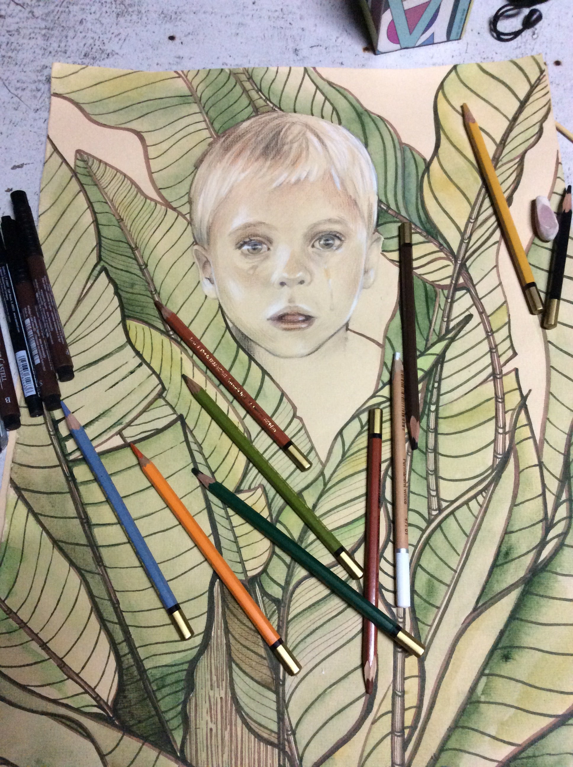 This pencil portrait was created in Thailand.
