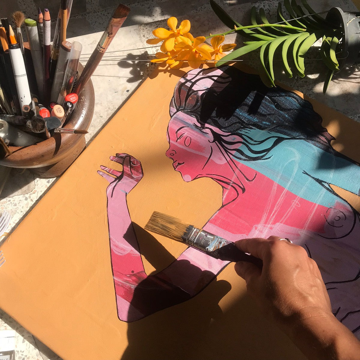 Canvases are usually displayed without an outer frame—the edges are painted as a continuation of the image for a clean, contemporary look.